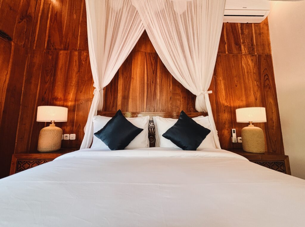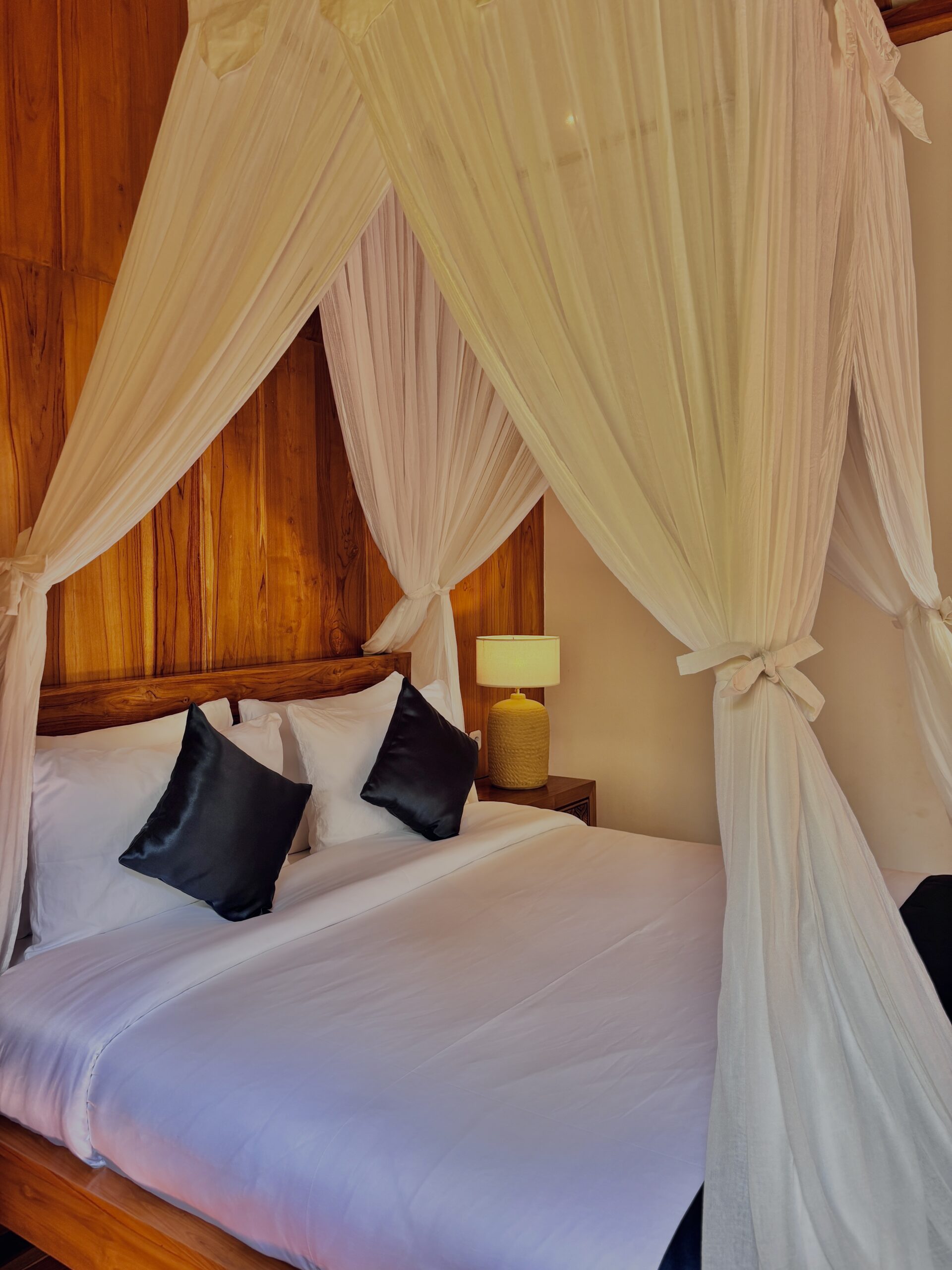 Each joglo features a Queen size bed, ensuring a restfull sleep, whule air conditioning keeps you cool in the tropical climate. Stay connected with high-speed wifi, enjoy refreshment from the Mini Bar, and freshen up with hot fresh water in your private bathroom.